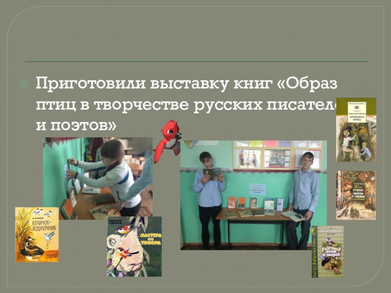 Слайд 12Приготовили выставку книг «Образ птиц в творчестве русских писателей и поэтов»
