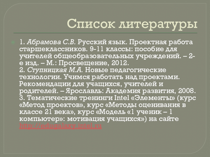 1. Абрамова С.В. Русский язык. Проектная работа старшеклассников. 9-11 классы: