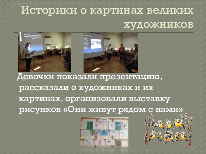 и их картинах, организовали выставку рисунков «Они живут рядом с нами»