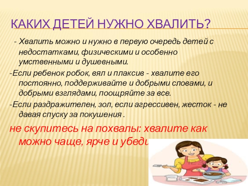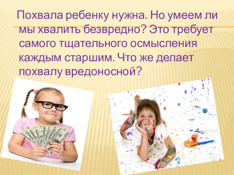 Слайд 7 Похвала ребенку нужна. Но умеем ли мы хвалить безвредно?