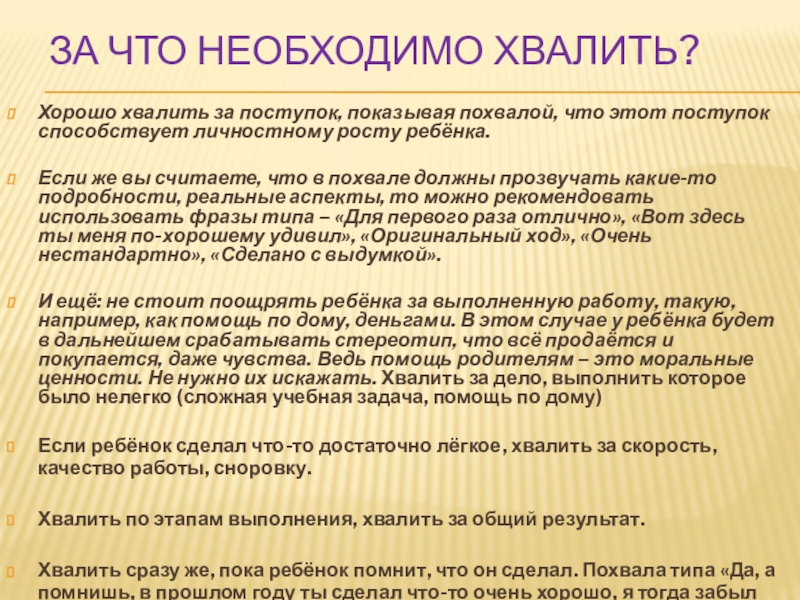 Слайд 6ЗА ЧТО НЕОБХОДИМО ХВАЛИТЬ?