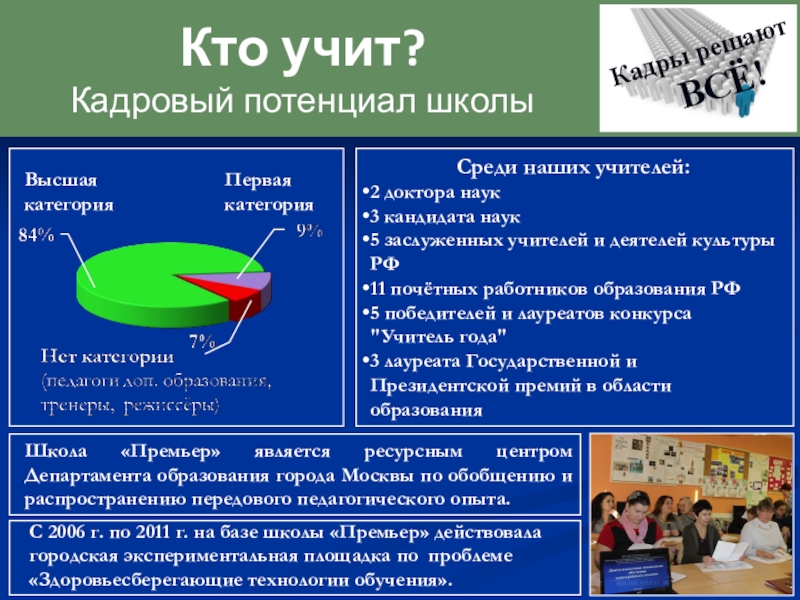 Школа «Премьер» является ресурсным центром Департамента образования города Москвы по обобщению и распространению передового педагогического опыта.