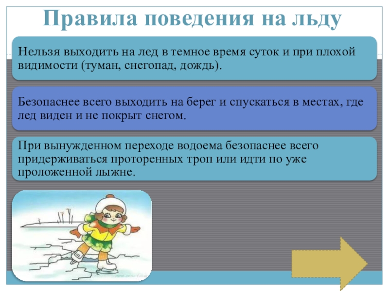 Слайд 3 Правила поведения на льду