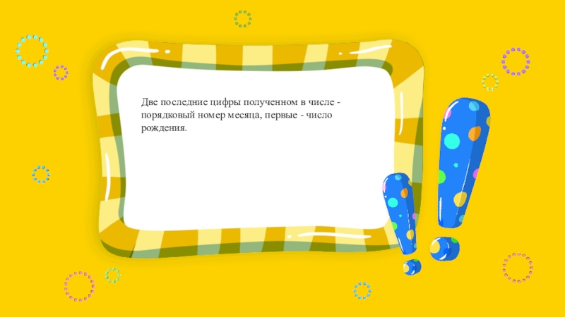 Слайд 18Две последние цифры полученном в числе - порядковый номер месяца, первые