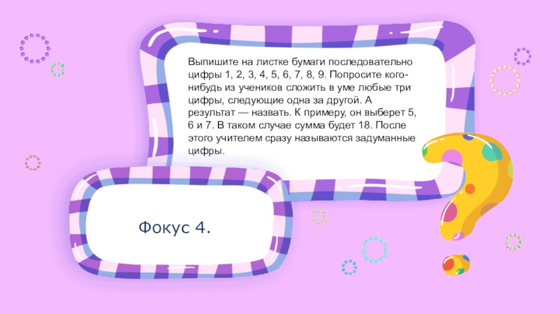 2. Математические фокусы, требующие сообразительности и смекалки.