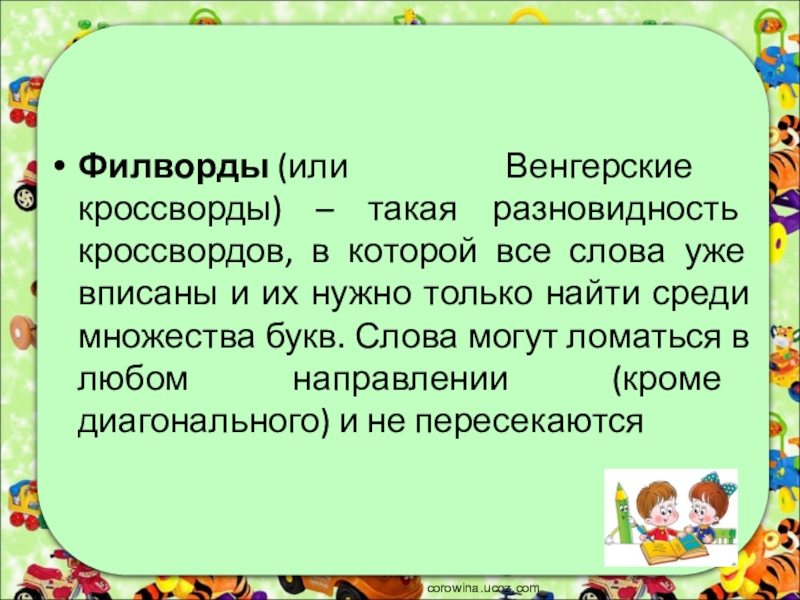 Это сайт презентаций, где можно хранить и обмениваться своими презентациями, докладами, проектами, шаблонами в формате PowerPoint с другими пользователями. Мы помогаем школьникам, студентам, учителям, преподавателям хранить и обмениваться учебными материалами.