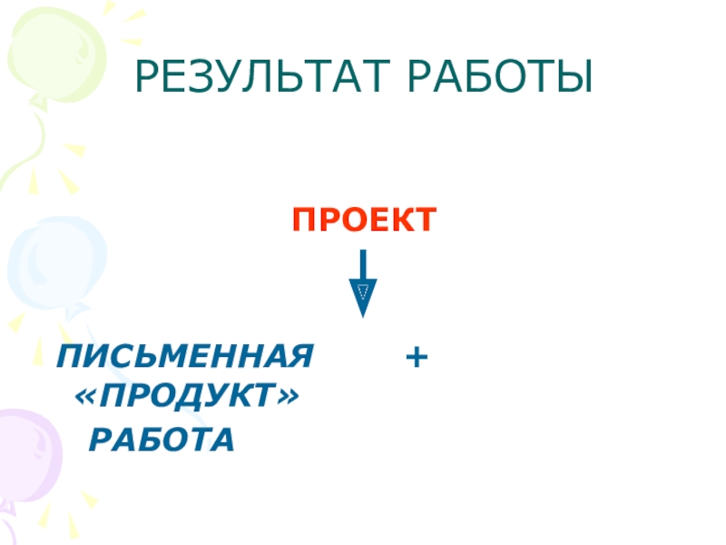 РЕЗУЛЬТАТ РАБОТЫПРОЕКТ ПИСЬМЕННАЯ    +   «ПРОДУКТ»   РАБОТА