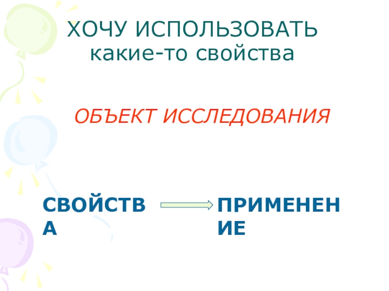 ХОЧУ ИСПОЛЬЗОВАТЬ  какие-то свойстваСВОЙСТВАПРИМЕНЕНИЕОБЪЕКТ ИССЛЕДОВАНИЯ