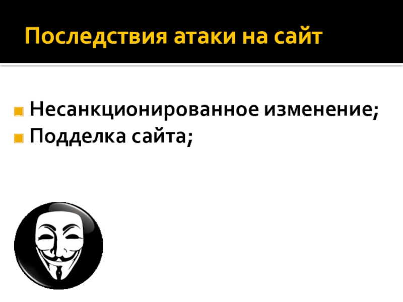 Последствия атаки на сайтНесанкционированное изменение;Подделка сайта;