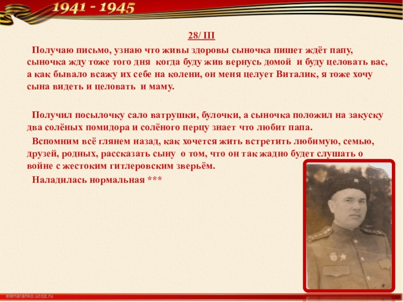 Вспомним всё глянем назад, как хочется жить встретить любимую, семью, друзей, родных, рассказать сыну о том, что он так жадно будет слушать о войне с жестоким гитлеровским зверьём.