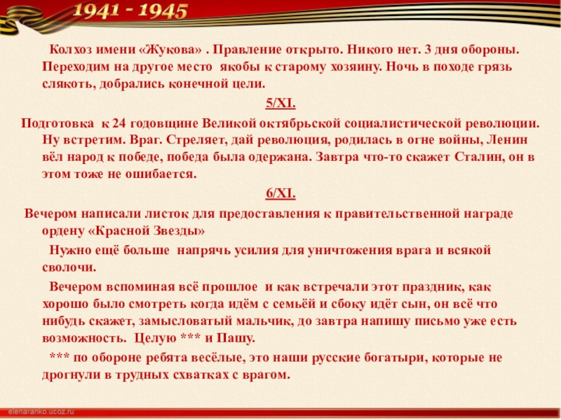 Слайд 10 Колхоз имени «Жукова» . Правление открыто. Никого нет. 3 дня обороны.