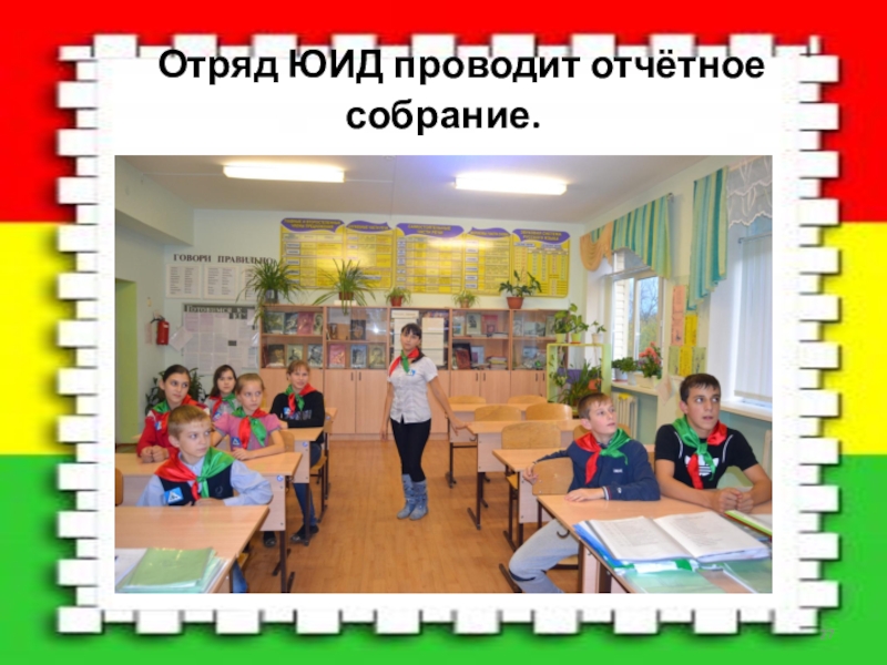 Слайд 27 Отряд ЮИД проводит отчётное собрание.