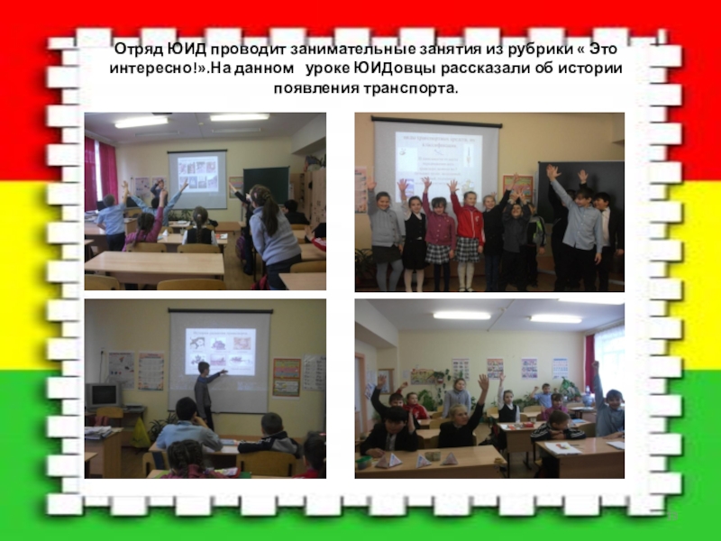 Слайд 13Отряд ЮИД проводит занимательные занятия из рубрики « Это интересно!».На данном