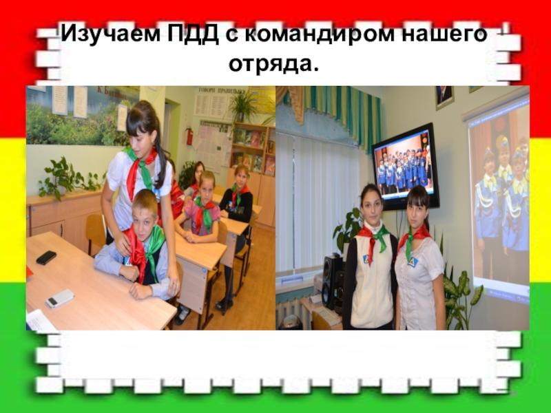 Слайд 28Изучаем ПДД с командиром нашего отряда.