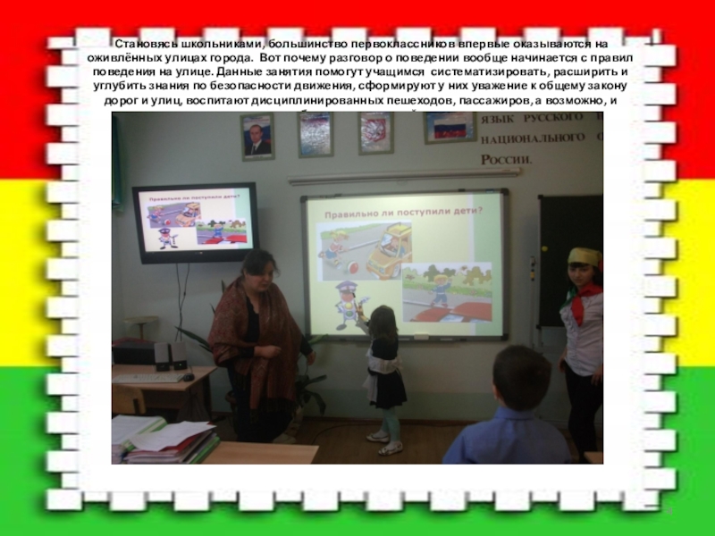 Слайд 4 Становясь школьниками, большинство первоклассников впервые оказываются на оживлённых улицах города.