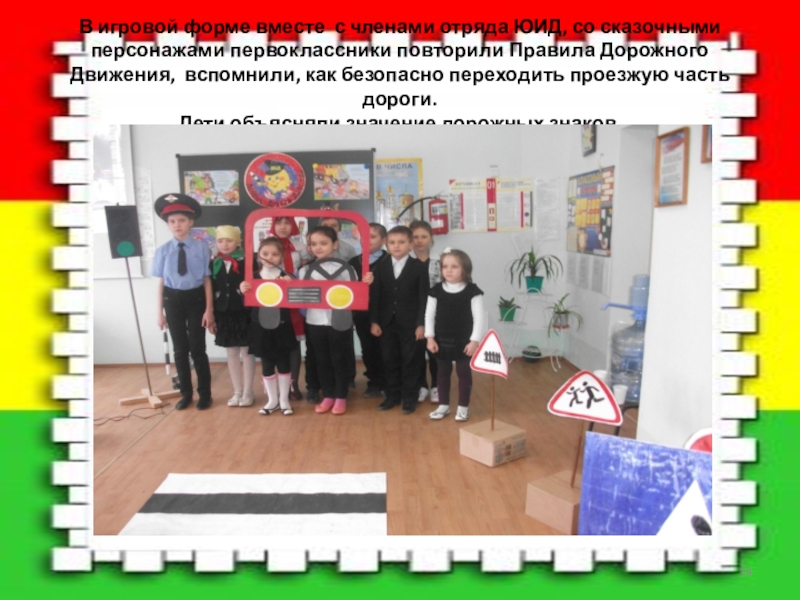 Слайд 14В игровой форме вместе с членами отряда ЮИД, со сказочными персонажами
