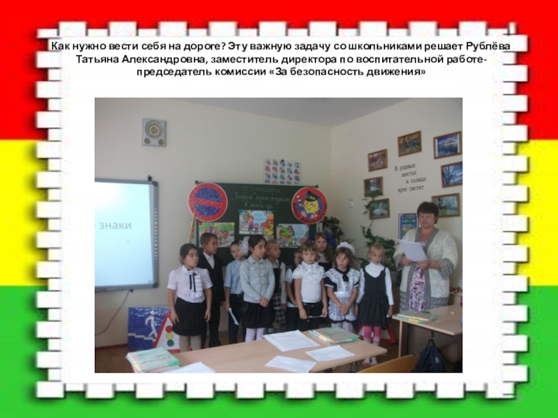 Т.В. организует творческую работу по пропаганде безопасности дорожного движения среди первоклассников и вместе с ними.