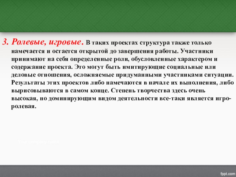 Слайд 223. Ролевые, игровые. В таких проектах структура также только намечается и