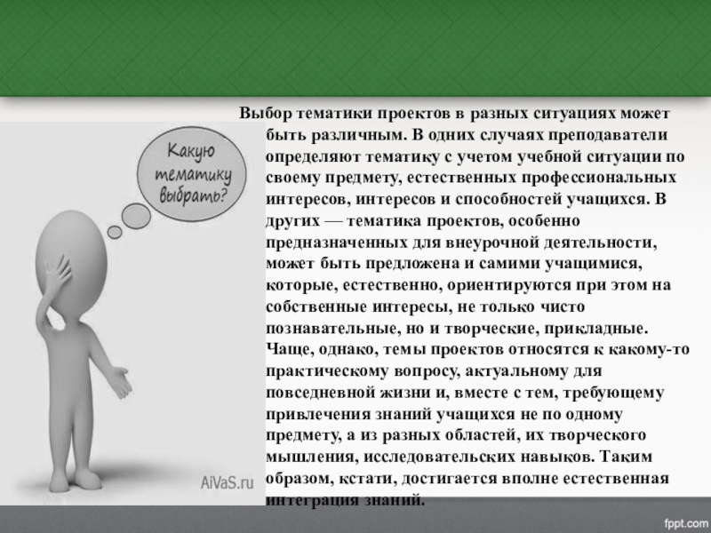 Слайд 13Выбор тематики проектов в разных ситуациях может быть различным. В одних