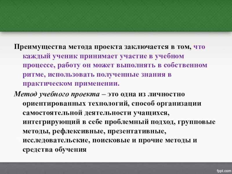 Слайд 18Преимущества метода проекта заключается в том, что каждый ученик принимает участие