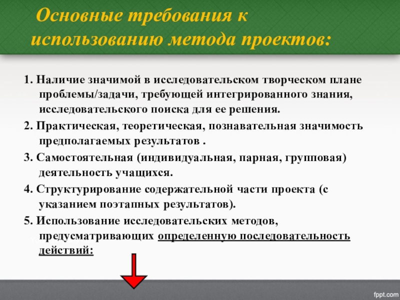Основные требования к использованию метода проектов: