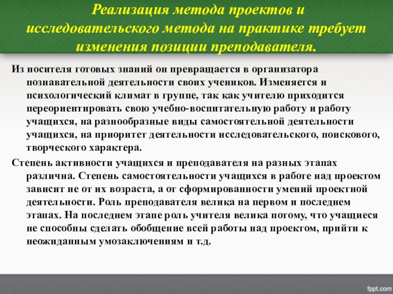 Слайд 31 Реализация метода проектов и исследовательского метода на практике требует изменения
