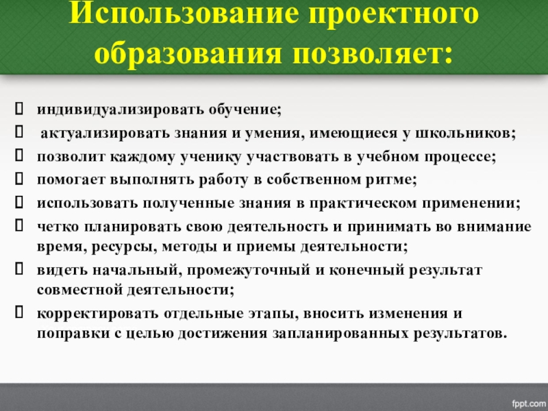 Слайд 17Использование проектного образования позволяет: