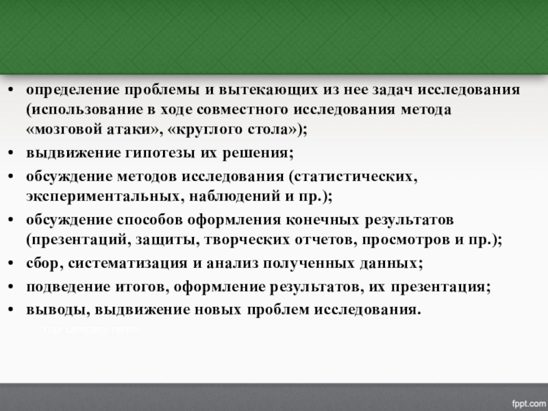 совместного исследования метода «мозговой атаки», «круглого стола»);