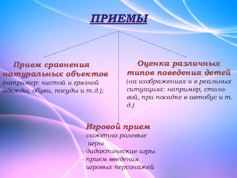 Прием сравнения натуральных объектов (например: чистой и грязной одежды, обуви, посуды и т.д.);