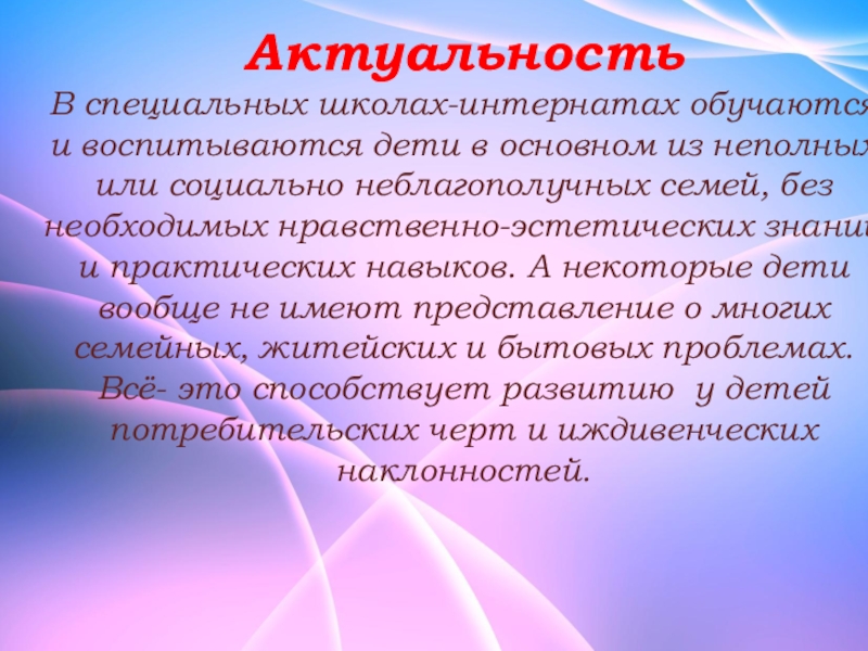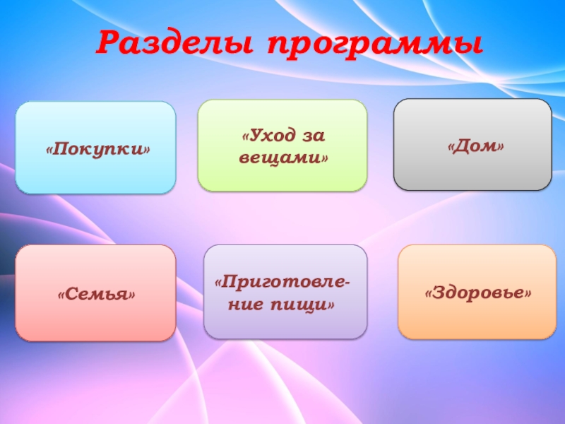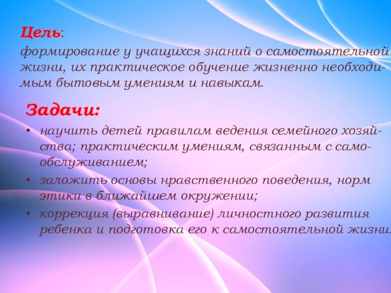 научить детей правилам ведения семейного хозяй-ства; практическим умениям, связанным с само-обслуживанием;