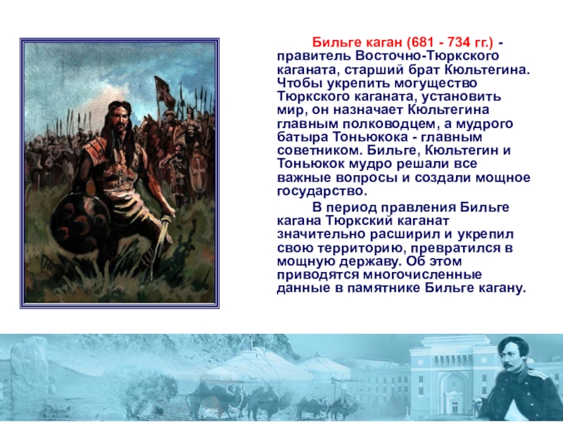 Слайд 13 Бильге каган (681 - 734 гг.) - правитель Восточно-Тюркского каганата, старший