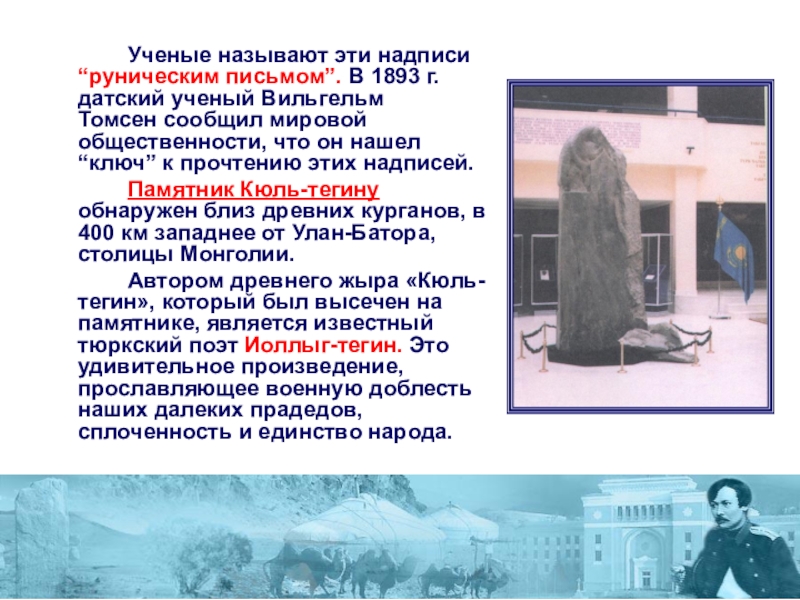 Слайд 18 Надписи Узынсу - памятник древнетюркской письменности.