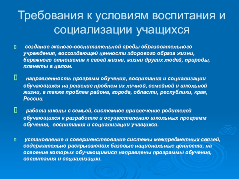 Слайд 16Требования к условиям воспитания и социализации учащихся