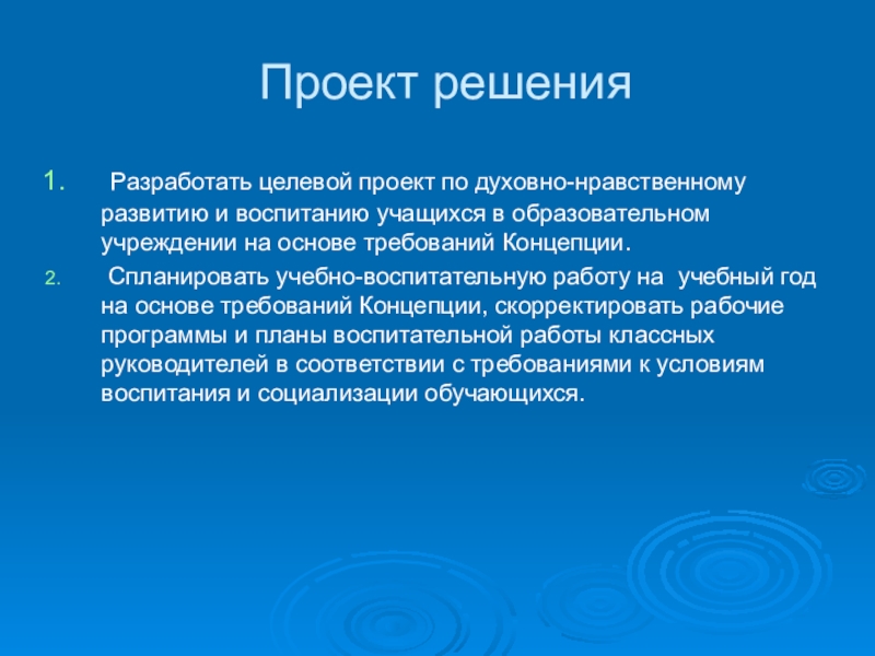Разработать целевой проект по духовно-нравственному развитию и воспитанию