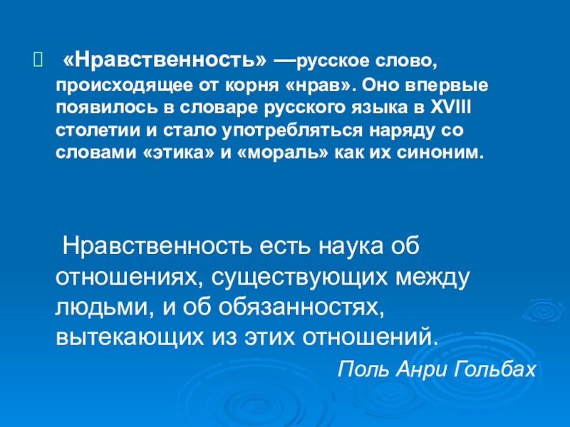 в словаре русского языка в XVIII столетии и стало употребляться наряду со словами «этика» и «мораль» как их синоним.