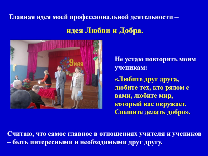 Считаю, что самое главное в отношениях учителя и учеников – быть интересными и необходимыми друг другу.