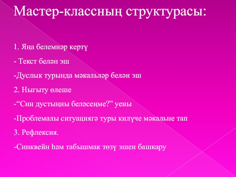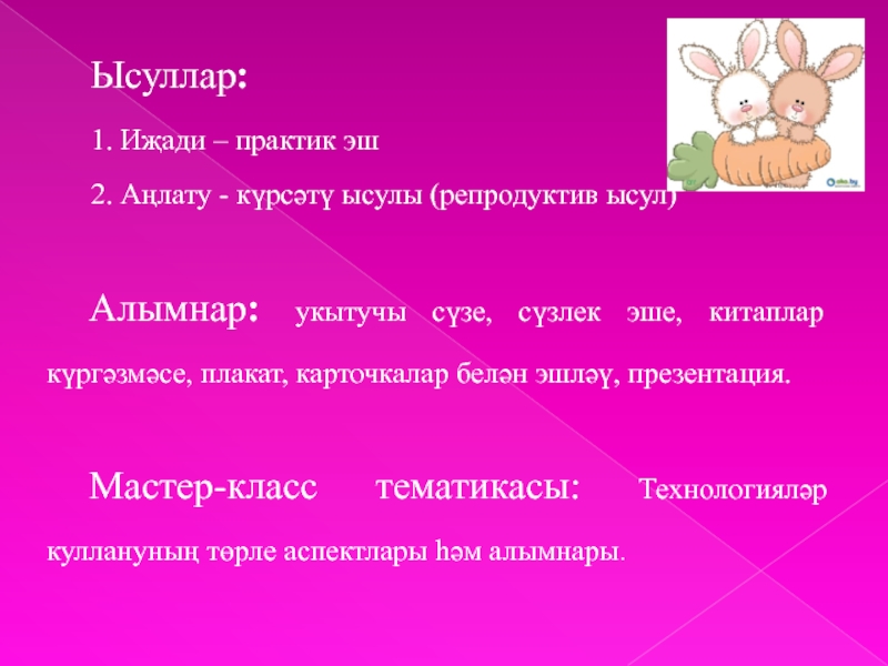 Мастер-класс тематикасы: Технологияләр куллануның төрле аспектлары һәм алымнары.