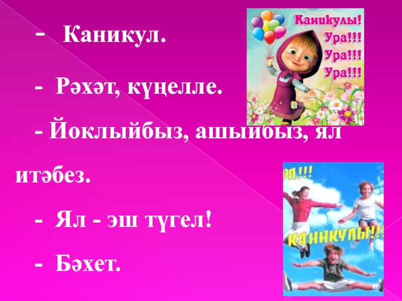 - Йоклыйбыз, ашыйбыз, ял итәбез.