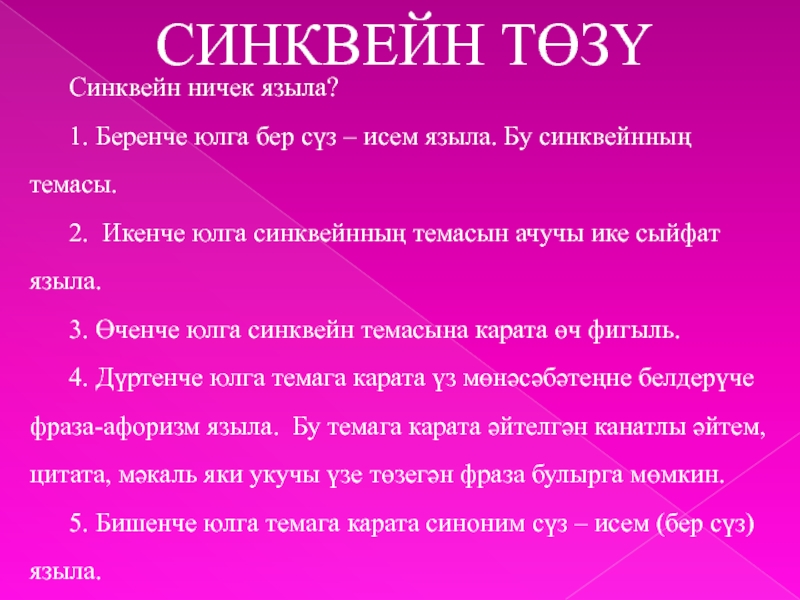 Слайд 19СИНКВЕЙН ТӨЗҮ