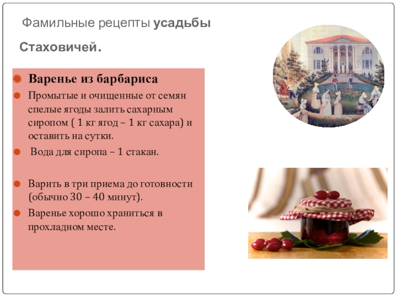 Слайд 19 Фамильные рецепты усадьбы Стаховичей.