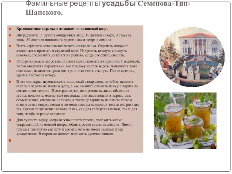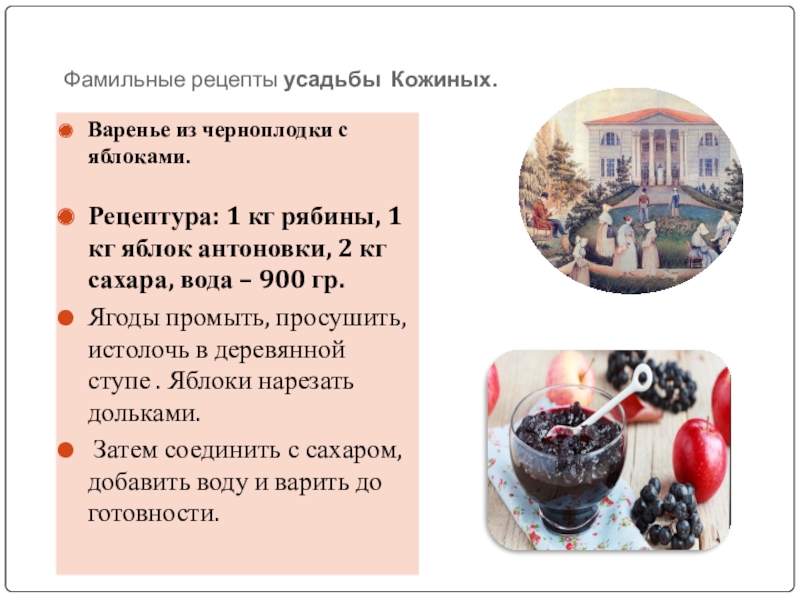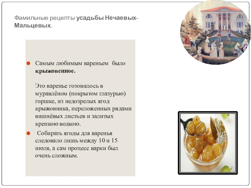 Слайд 16Фамильные рецепты усадьбы Нечаевых-Мальцевых.