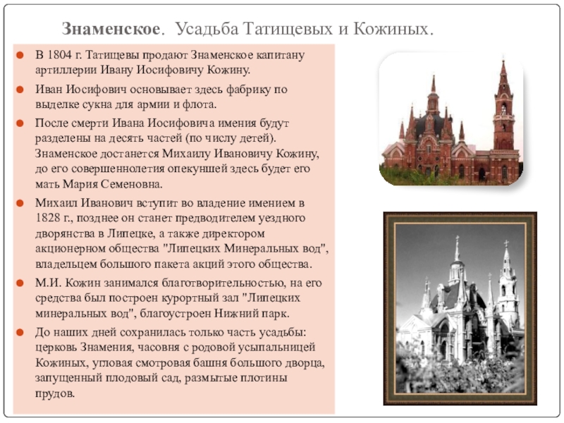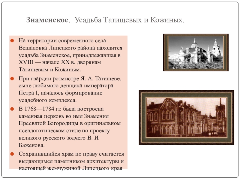 Слайд 8Знаменское. Усадьба Татищевых и Кожиных.