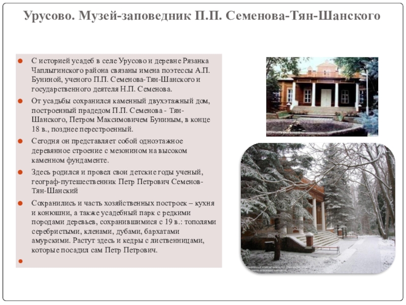 Слайд 12Урусово. Музей-заповедник П.П. Семенова-Тян-Шанского