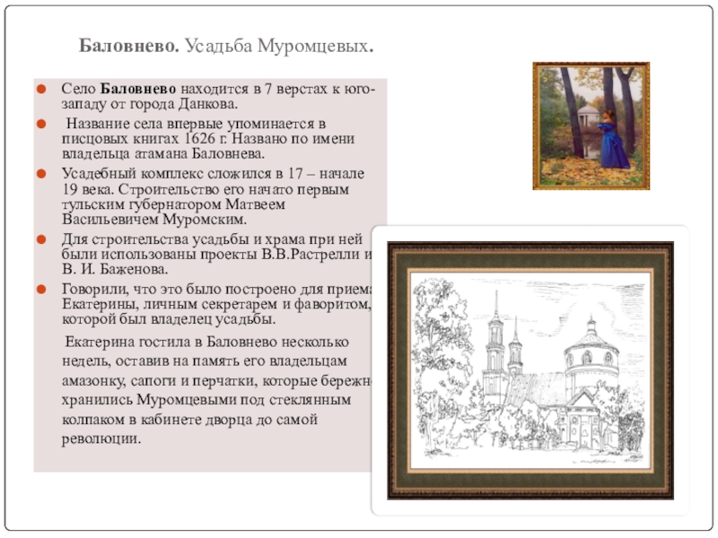 Слайд 5Баловнево. Усадьба Муромцевых.