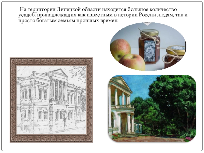 Слайд 2 На территории Липецкой области находится большое количество усадеб,