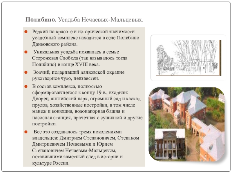 Слайд 6Полибино. Усадьба Нечаевых-Мальцевых.