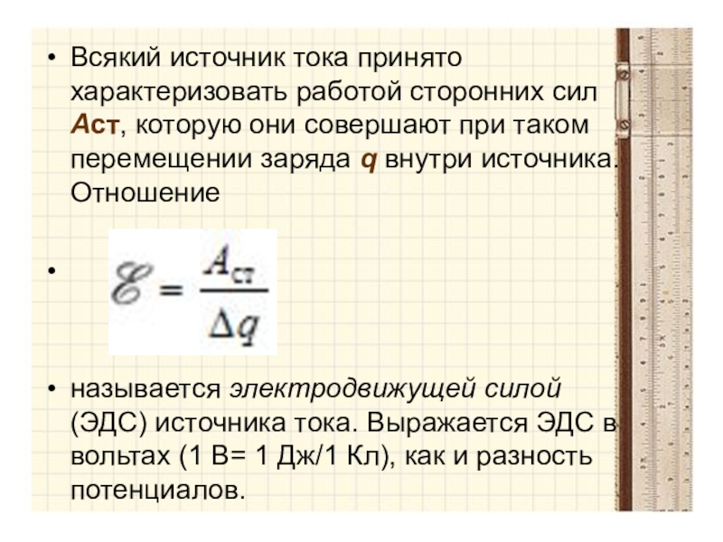 Всякий источник тока принято характеризовать работой сторонних сил Aст, которую они совершают при таком перемещении заряда q