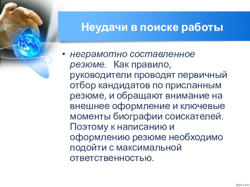 Организации стремятся нанимать победителей: преподносите себя им как подарок судьбы. Упаси вас Бог выглядеть жалким попрошайкой!