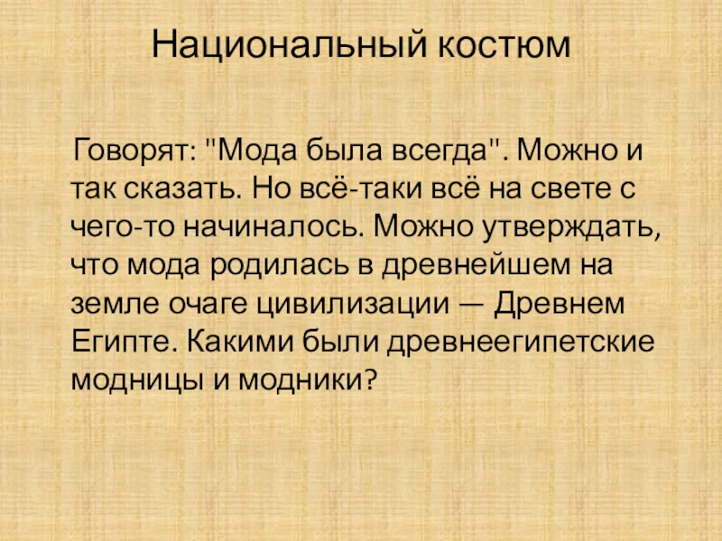 Но всё-таки всё на свете с чего-то начиналось. Можно утверждать, что мода родилась в древнейшем на земле очаге цивилизации — Древнем Египте. Какими были древнеегипетские модницы и модники?