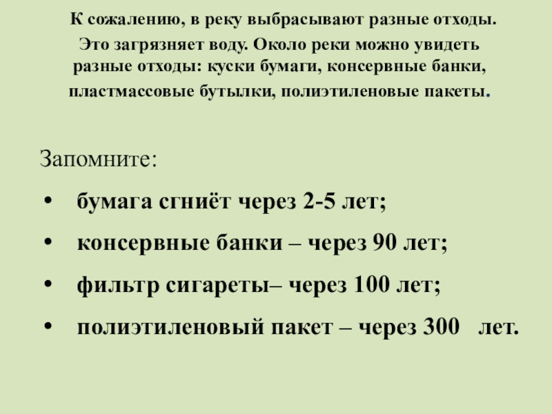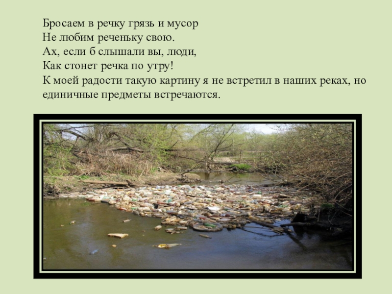 Слайд 13 К сожалению, в реку выбрасывают разные отходы.